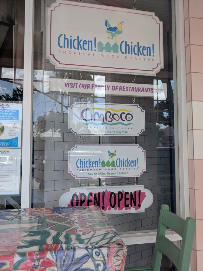 Chicken Chicken is located in Seven Mile Beach, and actually had some yummy, affordable food. They slow roast chicken on a rotating spicket that you can see when you walk in the door. The chicken is quite good, and the sides are agreeable as well. The cornbread is island style and VERY good. The average meal was $10 USD, which is very affordable for the island. All in all, a great stop for an affordable lunch or even dinner.
